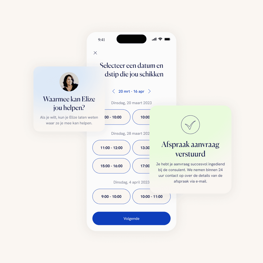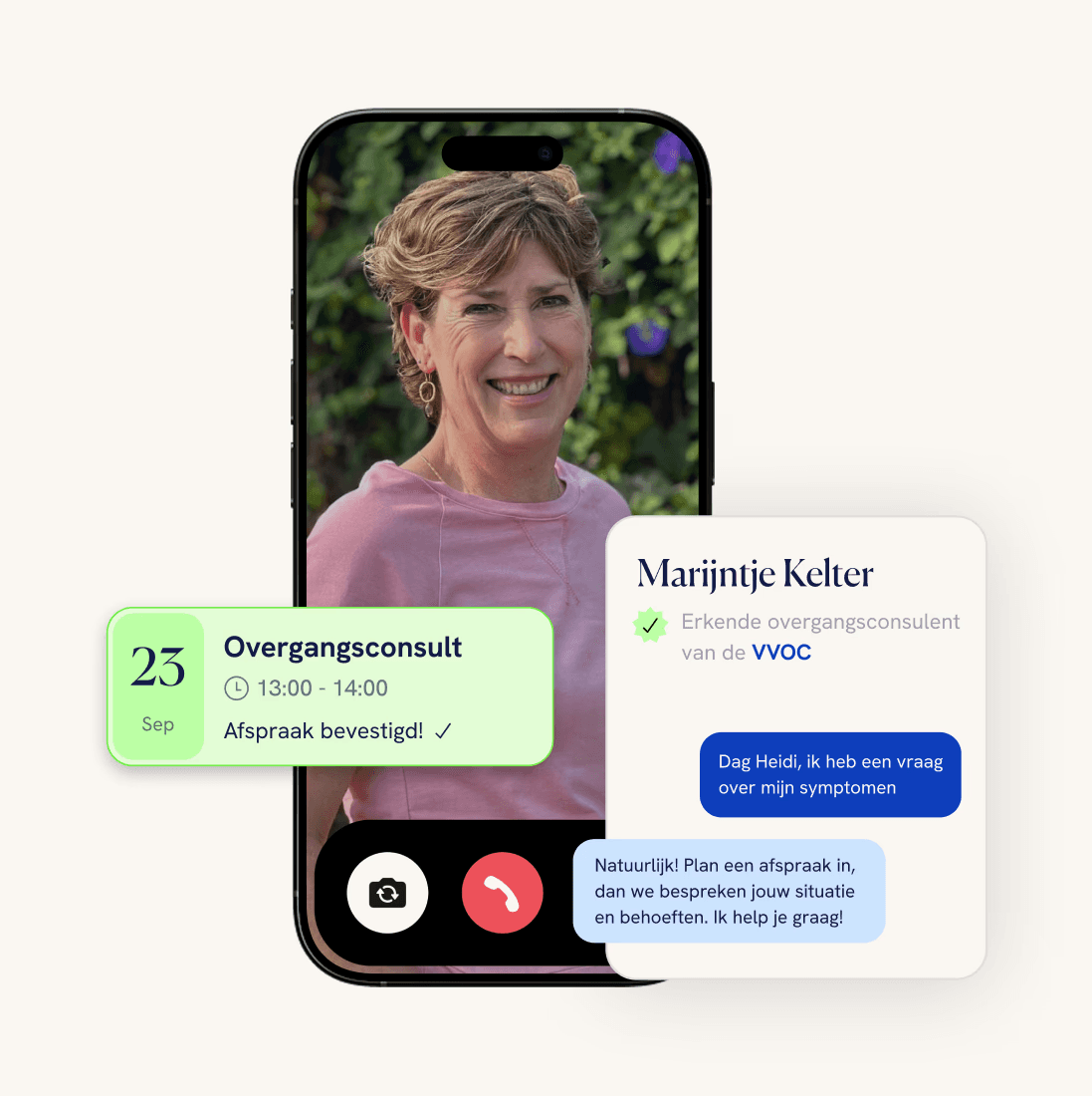 Soms is er persoonlijke begeleiding nodig. Via de app plannen vrouwen gesprekken met BIG-geregistreerde experts, zoals overgangsconsulenten of diëtisten. Laagdrempelig, deskundig en gericht op wat werkt.